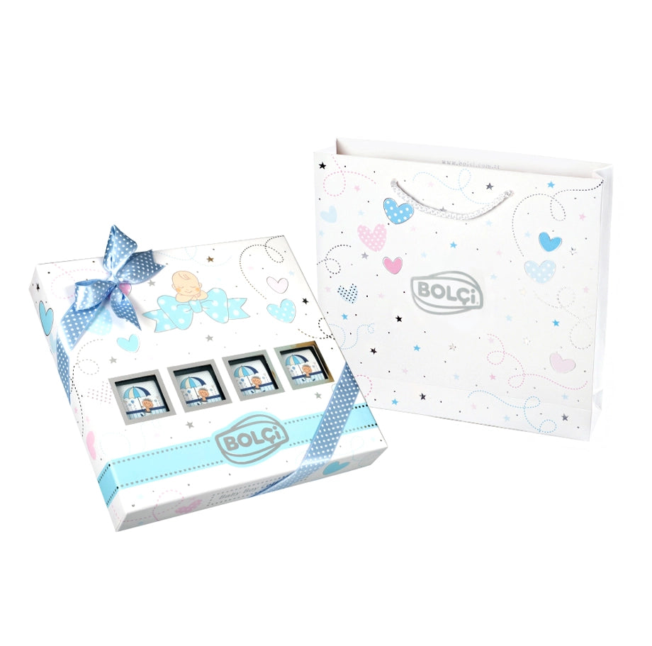 Yeni doğan bebekler için özel olarak tasarlanmış Bolçi Madlen Erkek Bebek Kutu 312g, şıklığı ve lezzetiyle öne çıkıyor. Mavi tonlarındaki zarif kutusu ve kaliteli sütlü çikolatalarıyla, bebek ziyaretleri, doğum günleri veya özel günler için ideal bir hediye alternatifi sunuyor.