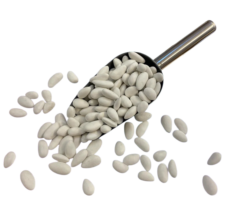 Bu ürün, kaliteli sütlü çikolata ile kaplanmış taze bademlerden yapılır. Beyaz renkli çikolata, tatlı ve kremsi bir lezzet sunarken, bademlerin gevrek yapısı ile mükemmel bir kontrast oluşturur.